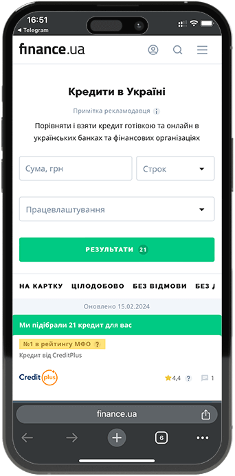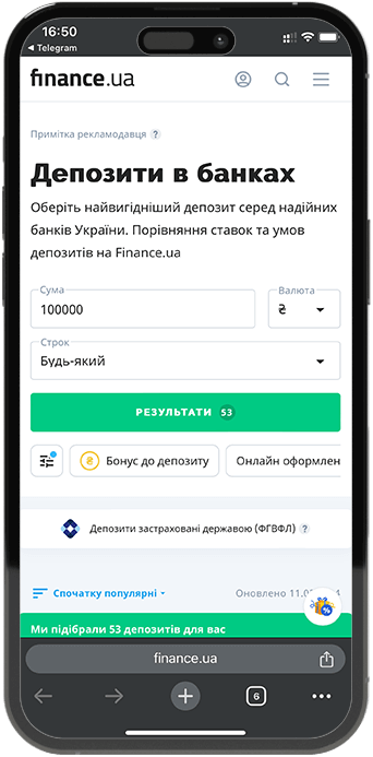Finance.ua – один з провідних фінансових порталів України, що вже 25 років допомагає користувачам знаходити корисну інформацію, порівнювати банківські та страхові послуги, а також замовляти фінпродукти онлайн.
