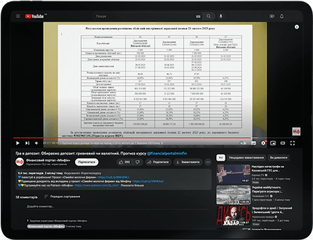Інтеграція у відео на youtube каналах (Мінфін та Finance.ua)